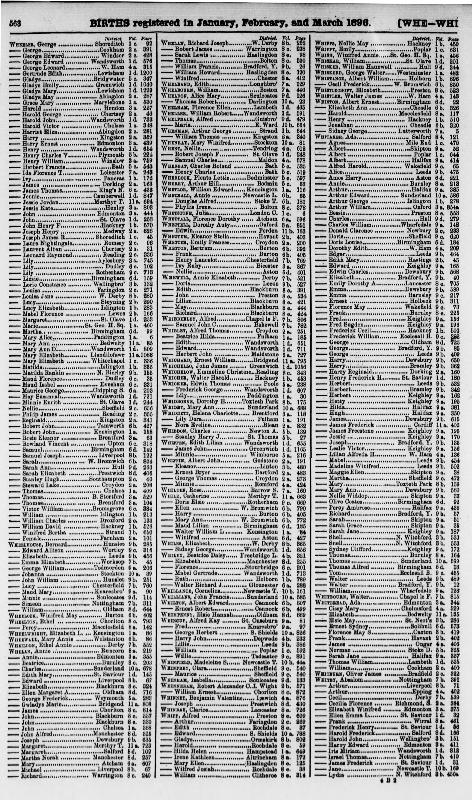 Birth Register Maud Lillian WHILERegistered at Birmingham on March 1896 Volume 6d Page 185