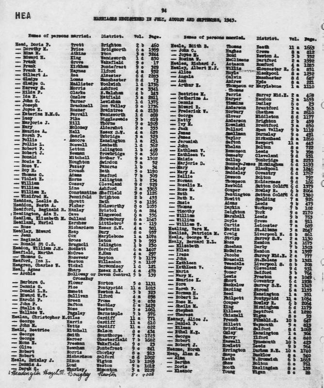 Wedding Register Dennis P V KING and Shelia M HEALY : Registered at Birmingham During September 1943 : Volume 6d : Page 1179