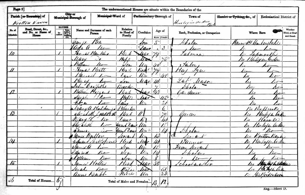 England Census 7 April 1861 : 12, Cross Key Henley in Arden Warwickshire District Stratford on Avon : Sub District Wooten Wawen Parish Wooton Wawen Emuneration District 8 Piece 2232 Folio 87 Schedule 12 Page Number 2 2