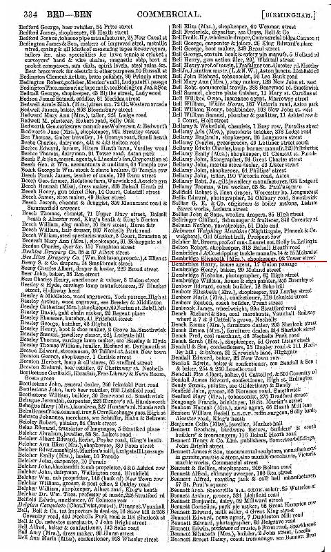 Residence Details: 92, Tower Street, Birmingham 1890 : Source UK, City and County Directories, 1766 - 1946
