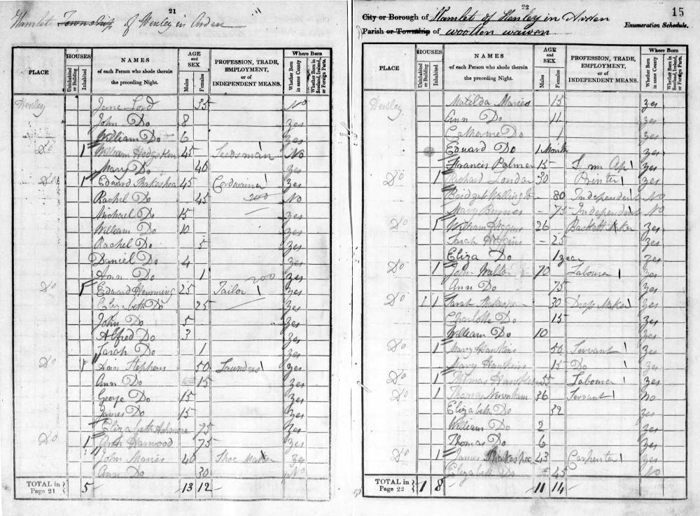 England Census 6 June 1841 : Henley Henley in Arden Warwickshire District Stratford On Avon : Sub District Wooton Waven Book 21 Folio 15 Page Number 22 22
