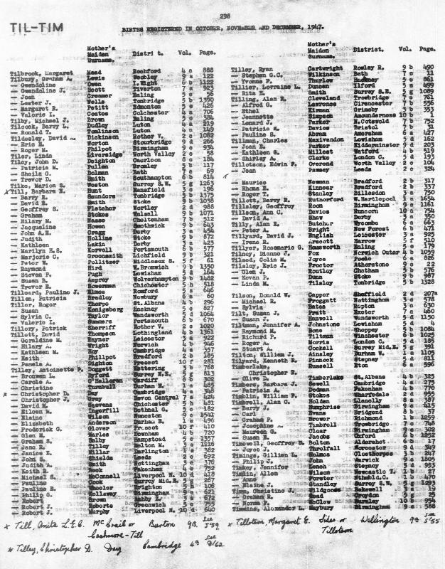 Birth Register Ethel TILLINGRegistered at Grimsby on December 1947 Volume 3b Page 353 Mothers Maiden Name KIRMAN