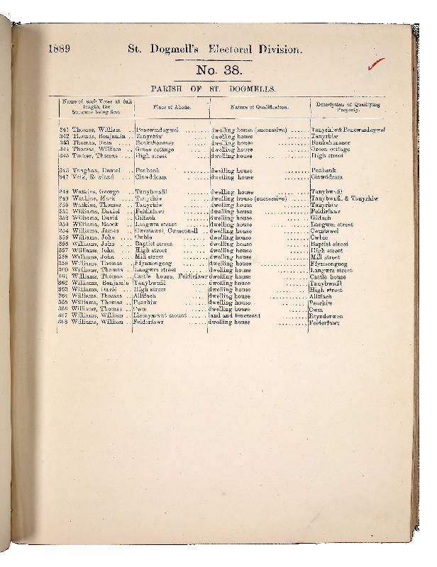 Residence Details: Tanybwnfil & Tanyrhiw, St. Dogmells, Pembrokeshire, Wales 1889 : Source Electoral Register