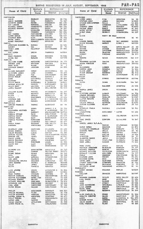Ibid. Nicola Ann PASKRegistered at Dudley on 26 December 1968 Volume 9b Page 250 Mothers Maiden Name PLANT