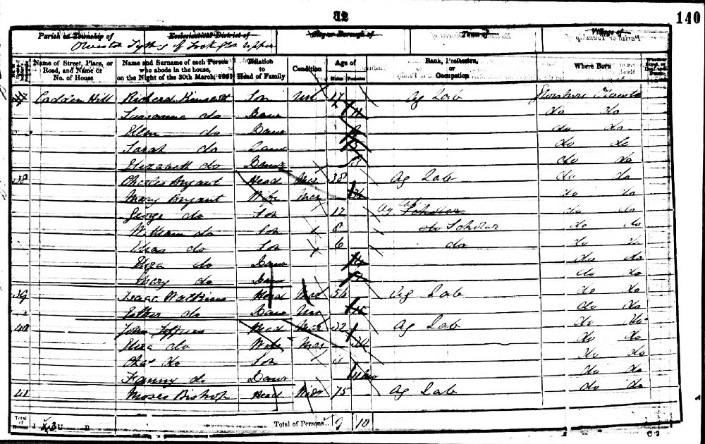 England Census 30 March 1851 Olveston Gloucestershire District Thornbury : Sub District Almondsbury Parish Olveston Emuneration District 09C Piece 1957 Folio 140 Schedule 39 Page Number 12 12