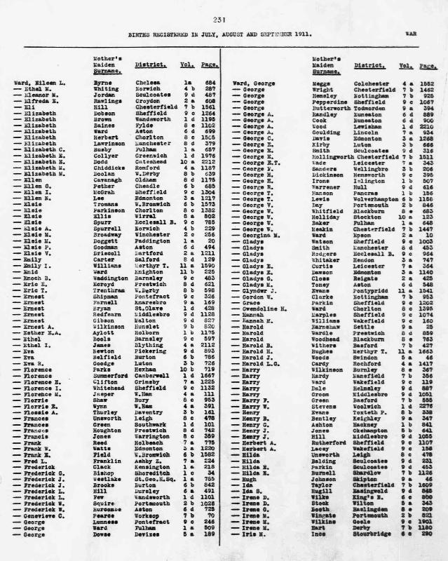 Birth Register George Charles WARDRegistered at Edmonton on 9 June 1911 Volume 3a Page 1268 Mothers Maiden Name DAVIS