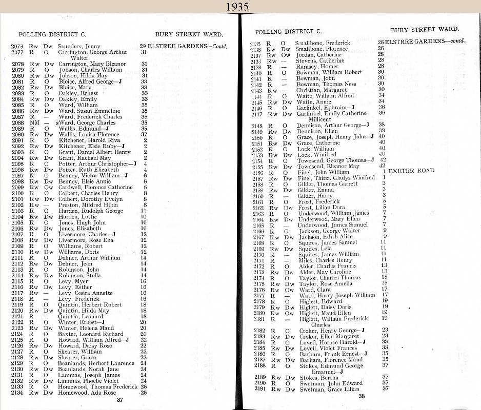 Residence Details: 35, Elstree Gardens, Edmonton, London "1934–1938" : Source London, England, Electoral Registers, 1832-1965