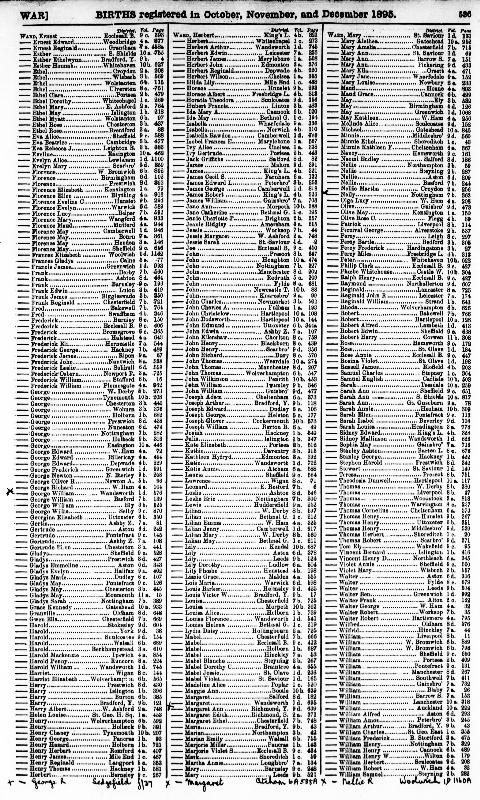 Birth Register Mary Ann WARDRegistered at St Saviour on December 1895 Volume 1d Page 69