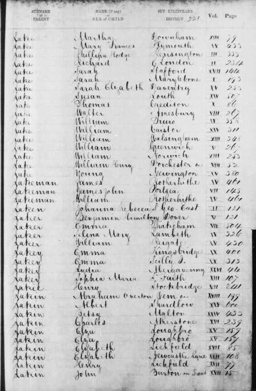 1861 Census taken on 7 April reveals two children of household both named Eliza LAKIN.