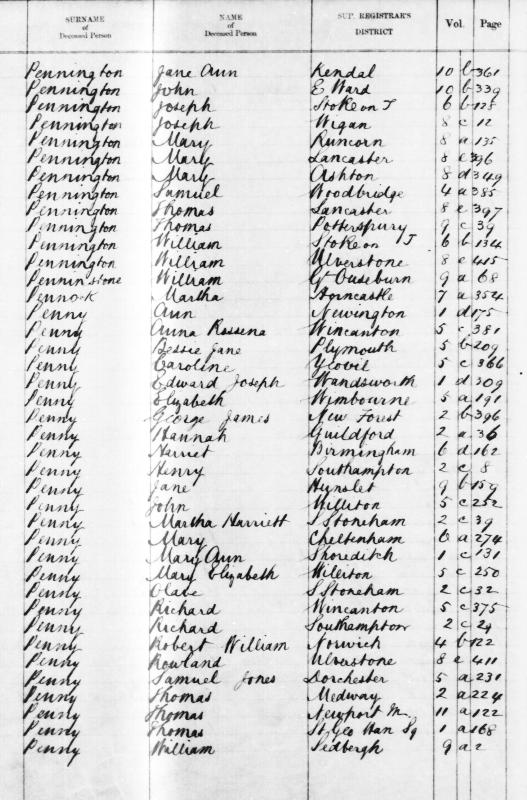 Death Register Edward Joseph PENNY Born June 1858 : Died October 1858 Registered at Wandsworth Volume 1d Page 309