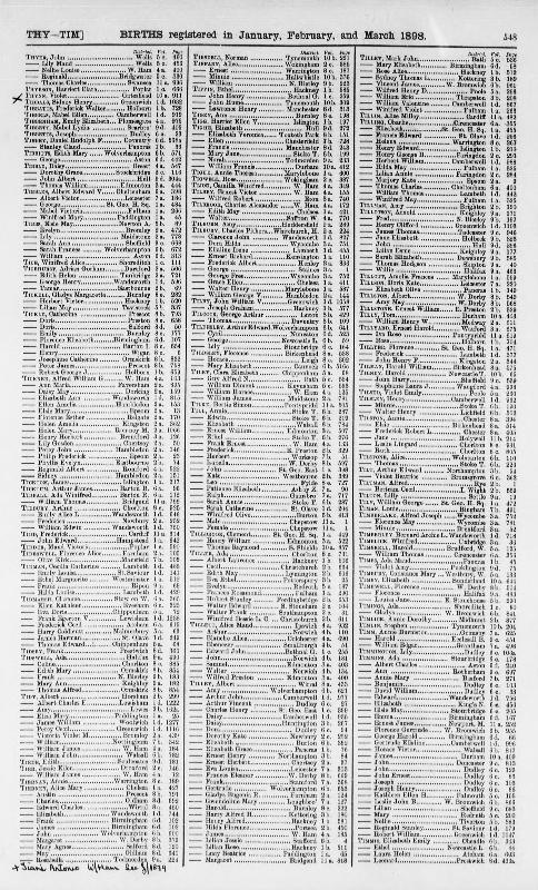 Birth Register Sarah Catherine TILLRegistered at St Olave on March 1898 Volume 1d Page 204