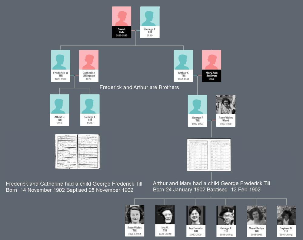 Attachments TILL George Francis Born/age 1902: Two cousins with same name and both born in 1902 One Born 24 Jan 1902 The other Born 28 Nov 1902 Source Details contained in attached PDF document