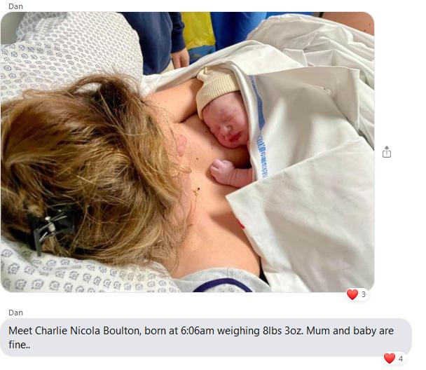 Birth Facebook entry by Daniel BOULTON Charlie Nicola BOULTON Registered at France on 26 January 2021