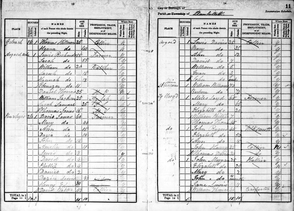Wales Census 6 June 1841 : Penrhys Llanhilleth Monmouthshire Parish Llanhilleth Emuneration District 24 Class HO107 Piece 743 Book 8 Folio 11 Page Number 13 Line 18 GSU Roll 438843 13