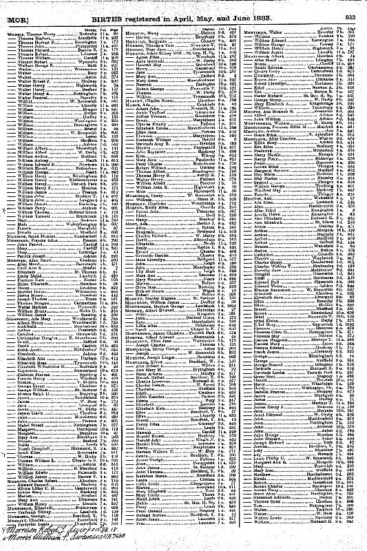 Birth Register Benjamin MORTRegistered at Bridgend on 10 May 1883 Volume 11a Page 583