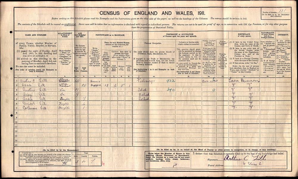 England Census 2 April 1911 : 6 Elim Street, Bermondsey Southwark Surrey District 24 : Sub District Bermondsey Emuneration District 04 Class RG14 Piece 1869 Page Number 262 262
