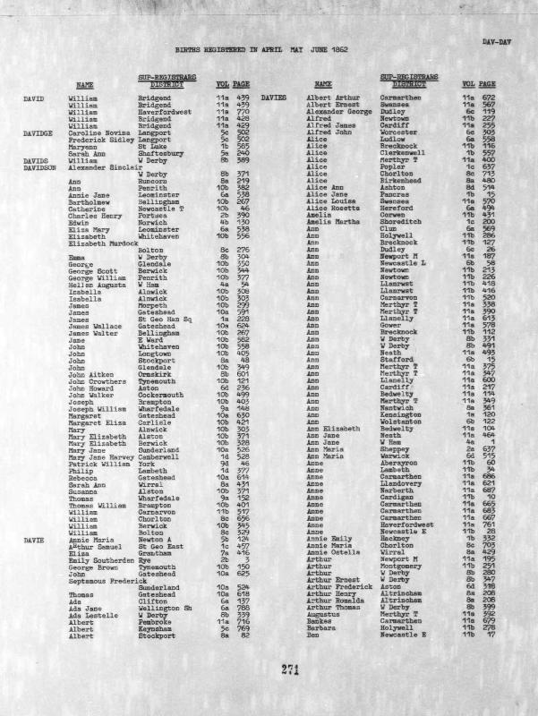 Birth Register Ann DAVIESRegistered at Llanelly on April 1862 Volume 11a Page 613