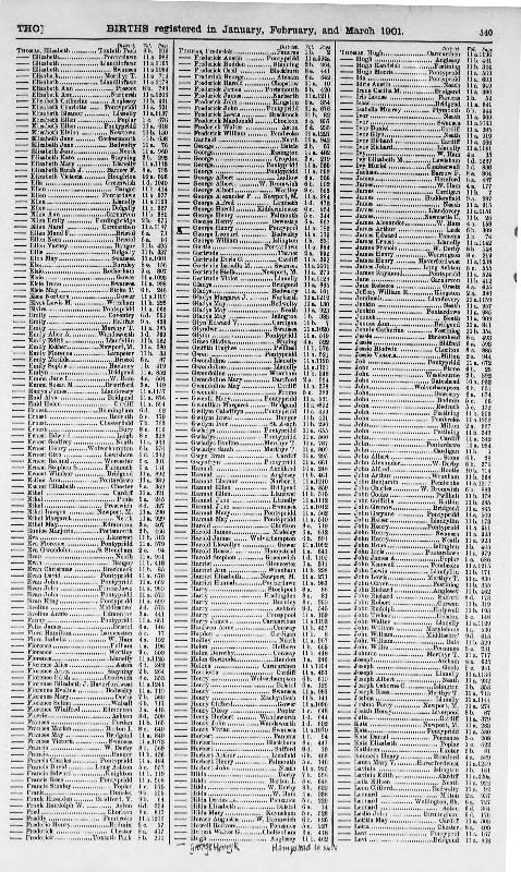 Birth Register Emlyn THOMASRegistered at Bridgend on 1 February 1901 Volume 11a Page 852