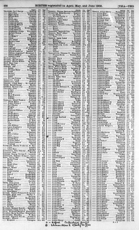 Birth Register David Isaac THOMASRegistered at Bridgend on June 1906 Volume 11a Page 890